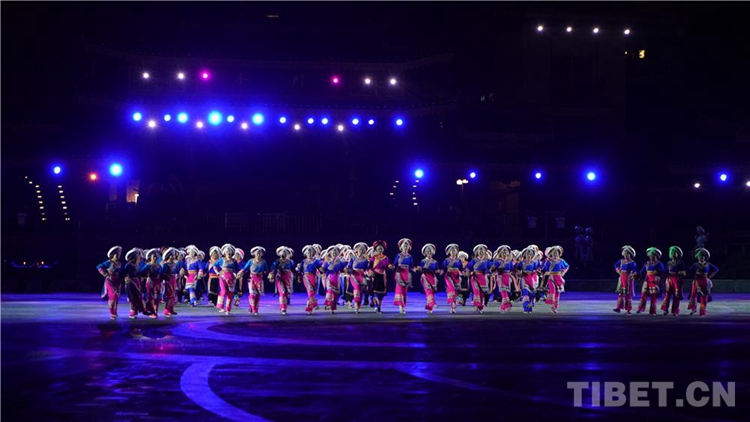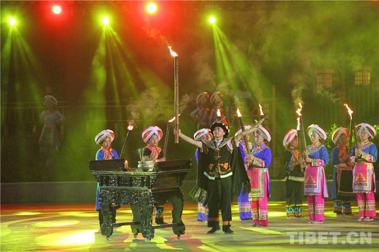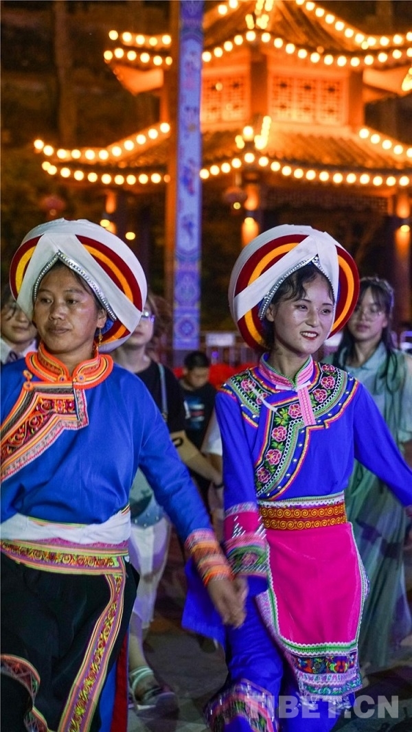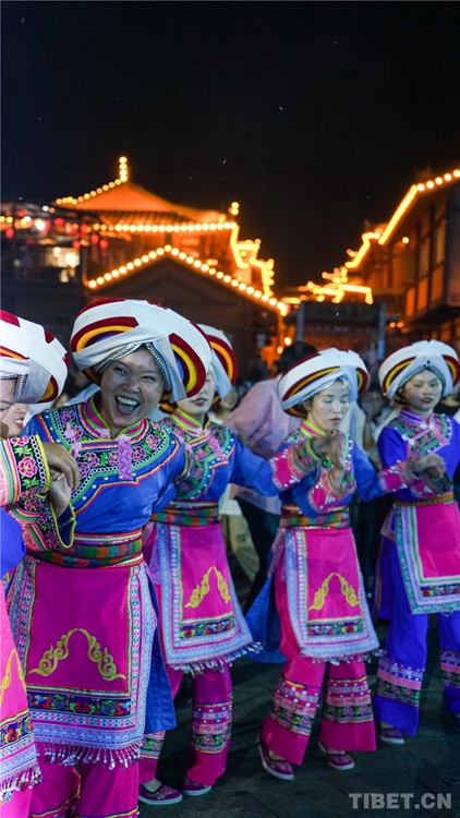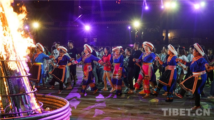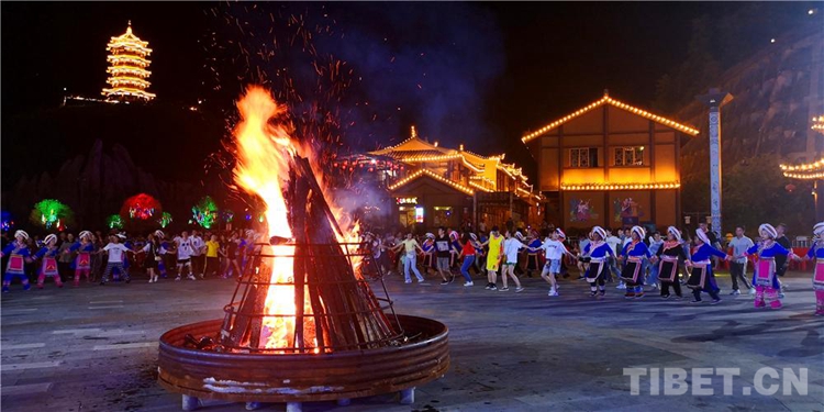 中國西藏網(wǎng)訊 當(dāng)陣陣涼風(fēng)襲來,暑氣漸消,暮靄沉沉。碧水青山環(huán)抱的阿妹戚托小鎮(zhèn)卻漸漸躁動(dòng)起來,熱騰的火苗將夏夜“點(diǎn)燃”,人們環(huán)繞火把載歌載舞、歡唱高歌,沉醉其中、樂而忘返。