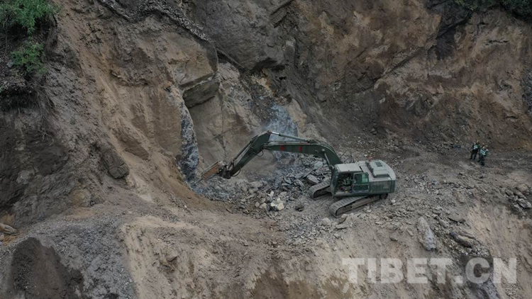 圖為該支隊官兵采取“雙向掘進”戰(zhàn)法全力搶修便道