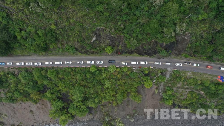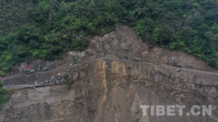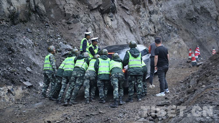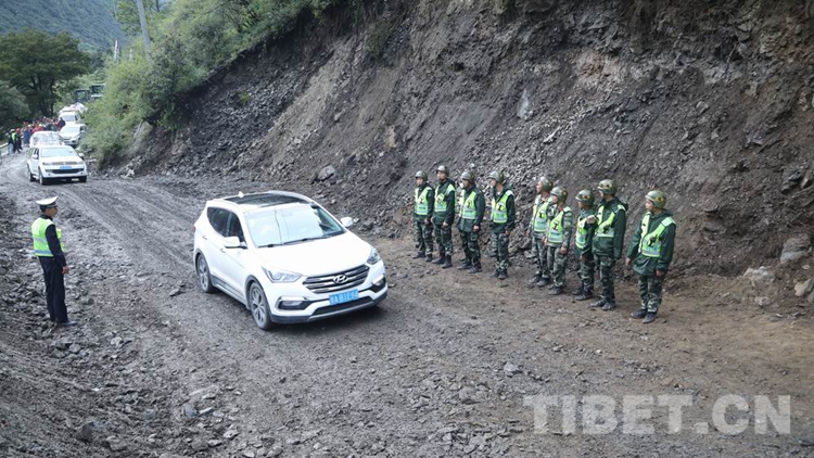 中國西藏網(wǎng)訊 8月28日18時許,經(jīng)過武警第二機動總隊某支隊官兵連續(xù)5天的艱苦鏖戰(zhàn),搶修出一條長215米的便道,使因路基垮塌造成國道318線西藏自治區(qū)林芝波密境內(nèi)段斷通的道路成功恢復通行,可供小型車輛單向通行。在武警官兵的指揮下,滯留兩端的車輛有序帶隊安全通過。