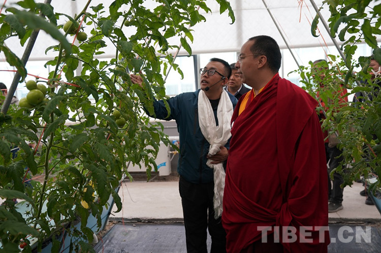 班禪走入蔬菜園、花卉園、熱帶植物園等溫室園區(qū),不時俯身仔細(xì)查看農(nóng)作物長勢。得知溫室內(nèi)竟種有百香果,班禪高興地說道:“百香果可是熱帶植物,能在那曲海拔這么高的地方種出來,很不容易!”在蔬菜園,班禪打開種植擋板,聽取無土栽培種植技術(shù)介紹,詳細(xì)詢問營養(yǎng)液噴灑時間、頻率等情況,點頭表示肯定。