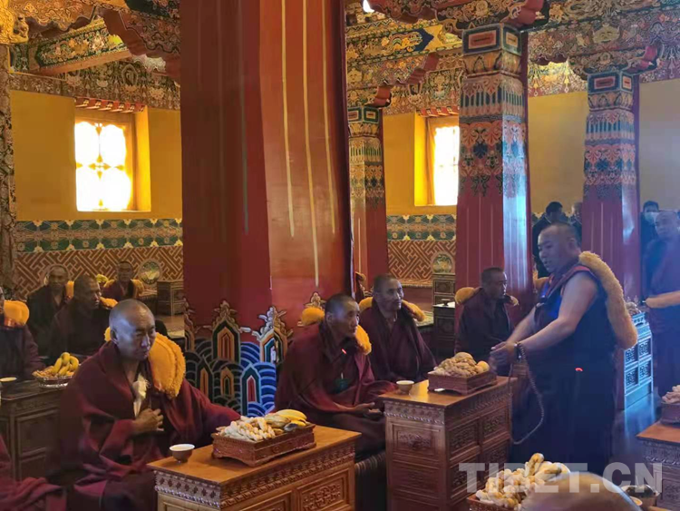 “大師不僅是格魯派的大師,也是我們整個西藏宗教界的代表引領(lǐng)人物,作為整個宗教界的大師,帶著黨中央的關(guān)懷來到我們這樣的小寺院,我們非常地感動,在這兒我替寺廟的所有僧人,向班禪大師表示感謝?!辈妓律藦娋脠詤⒄f。