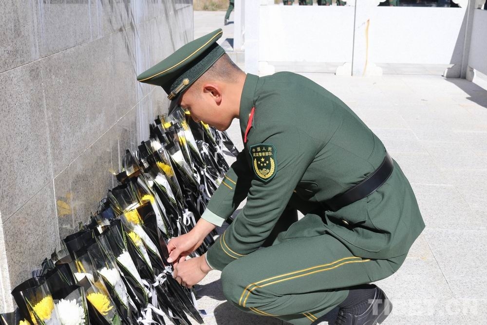 圖為武警第二機(jī)動(dòng)總隊(duì)某支隊(duì)向革命烈士敬獻(xiàn)鮮花