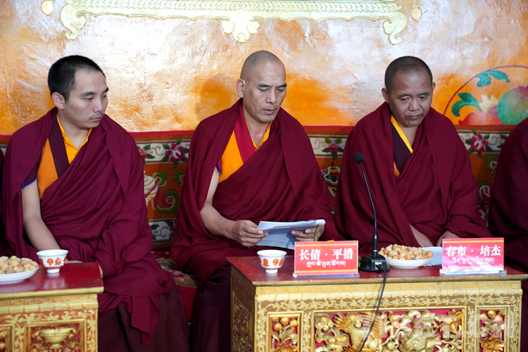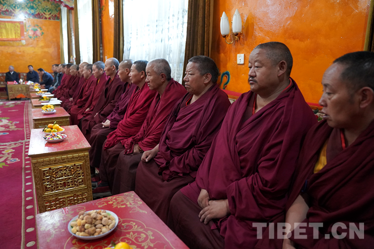 張延清說(shuō),今年,在中國(guó)共產(chǎn)黨成立100周年,西藏和平解放70周年之際,習(xí)近平總書記作為中共中央總書記、國(guó)家主席、中央軍委主席到西藏慶祝西藏和平解放,在黨和國(guó)家歷史上是第一次,充分體現(xiàn)了以習(xí)近平同志為核心的黨中央對(duì)邊疆地區(qū)的深情牽掛、對(duì)西藏工作的高度重視、對(duì)西藏各族干部群眾的深厚感情。7月22日下午,習(xí)近平總書記來(lái)到建寺600多年的哲蚌寺,受到了全寺僧人最高禮遇的迎接。習(xí)近平總書記充分肯定了哲蚌寺在擁護(hù)中國(guó)共產(chǎn)黨、擁護(hù)社會(huì)主義制度、維護(hù)祖國(guó)統(tǒng)一等方面做出的積極貢獻(xiàn),并關(guān)心詢問(wèn)僧人身體狀況特別是老年僧人健康問(wèn)題,在場(chǎng)的僧人都很感動(dòng)。縱觀世界,國(guó)家領(lǐng)導(dǎo)人如此高度重視宗教工作、如此深情關(guān)懷宗教界人士,唯有中國(guó)、唯有中國(guó)共產(chǎn)黨的領(lǐng)導(dǎo)人。知恩、念恩、感恩、報(bào)恩是菩提心的根本。各位僧人朋友們一定要按照習(xí)近平總書記的指示精神,守法敬業(yè)、愛(ài)國(guó)愛(ài)教、潛心修行、向善為民、利益眾生,真正做慈悲為懷的真佛子。
