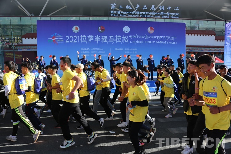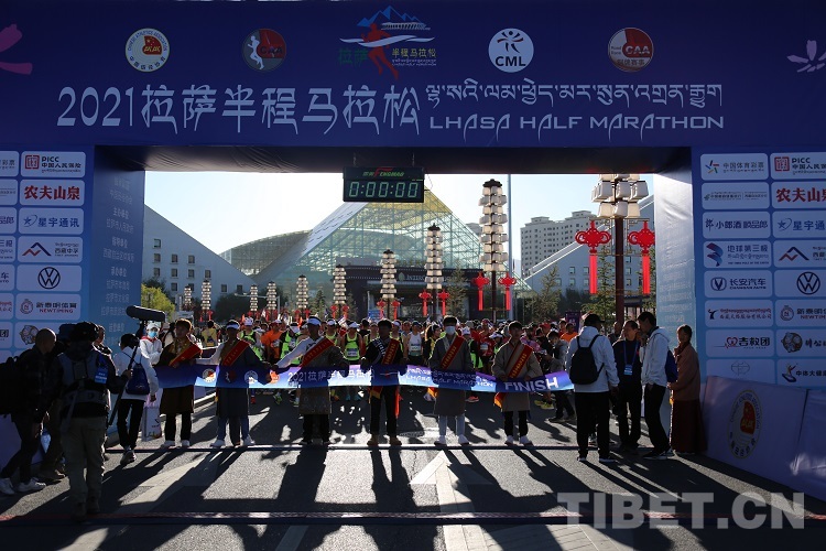 中國(guó)西藏網(wǎng)訊 “美麗拉薩,幸福家園,攜手奔跑,地球第三極?!卑殡S著一聲聲響亮的口號(hào),10月16日上午9點(diǎn)30分,2021年拉薩半程馬拉松(以下簡(jiǎn)稱:拉薩半馬)鳴槍開跑。