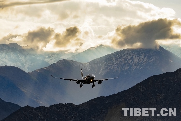 圖為一架飛機(jī)即將降落在拉薩貢嘎機(jī)場