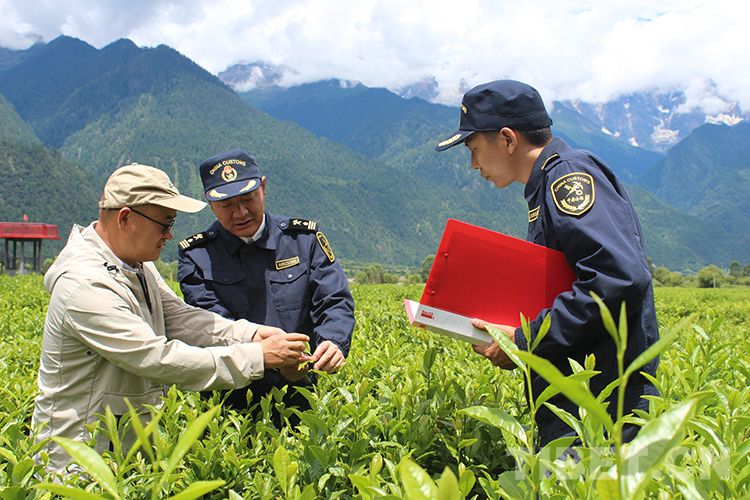 圖為海關(guān)關(guān)員在西藏自治區(qū)林芝市易貢茶場實地指導(dǎo)工作 圖片由拉薩海關(guān)提供