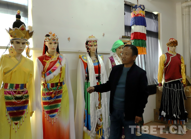 “我們主要制作藏戲面具、服飾,以及具有民族特色的手工藝品?!痹鹤拥闹魅宋髀褰榻B說。