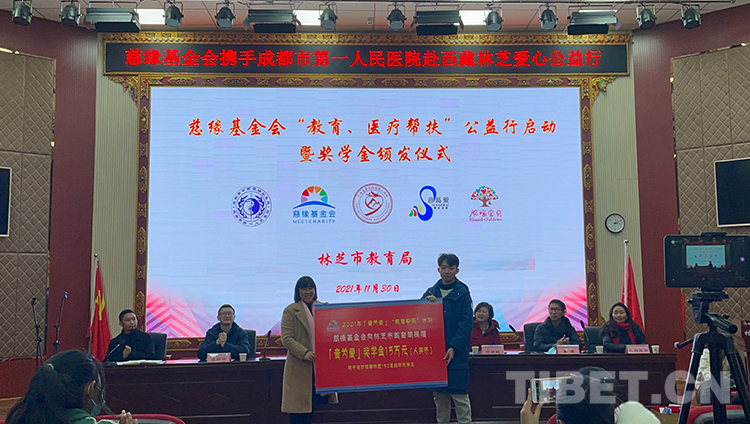 捐資助教項目由深圳慈緣基金會向林芝市教育局捐贈獎學金人民幣15萬元,用于資助林芝市六縣一區(qū)150名品學兼優(yōu)的中小學生。該筆獎學金是由來自世界名校的深圳校友會發(fā)起并組織社會愛心人士公益捐助而來,希望切實幫助西部地區(qū)品學兼優(yōu)的孩子們健康成長學有所成。