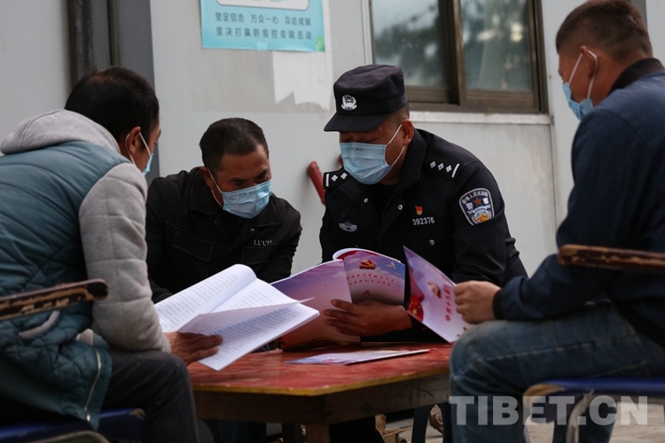 圖為民警為駐地工人講解黨的十九屆六中全會(huì)精神 攝影:鄒興國(guó)