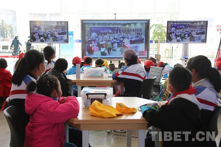 圖為西藏自然科學(xué)博物館受邀連線此次活動,西藏中小學(xué)生代表準備連線 攝影:王佳豪