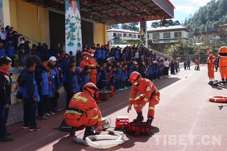 中國西藏網訊 近日,西藏自治區(qū)林芝市察隅縣森林消防中隊走進下察隅中心小學開展森林防火宣傳活動。圖為活動現(xiàn)場