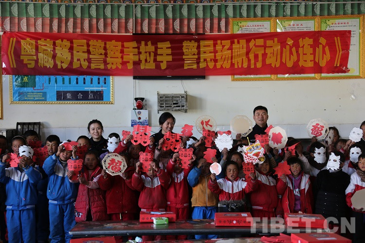 隨后,民警們?yōu)橥瑢W(xué)們發(fā)放了拉薩邊檢站和東莞邊檢站共同準(zhǔn)備的兒童手工DIY禮盒,并和同學(xué)們一起完成剪紙手工制作,共同感受著中華傳統(tǒng)文化美學(xué),體驗手工制作的樂趣?,F(xiàn)場歡聲笑語,其樂融融。