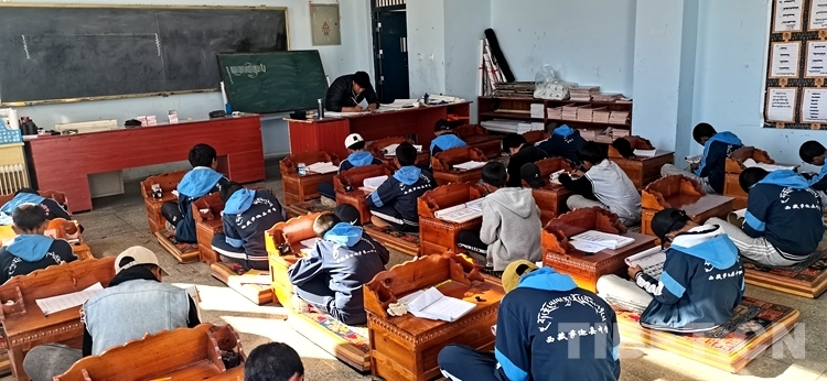 圖為薩迦縣中學(xué)藏文書法社在上課