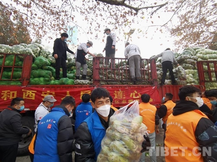 中國西藏網(wǎng)訊 “菜來了!菜來了!”隨著一聲聲歡呼,一輛由河南省南陽市“蔬菜之鄉(xiāng)”新野縣開來的大卡車,緩緩駛?cè)胛鞑孛褡宕髮W(xué)。