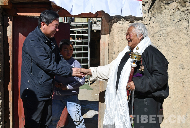 圖為西藏自治區(qū)公安廳駐村工作隊來到索朗仁青家中拜年
