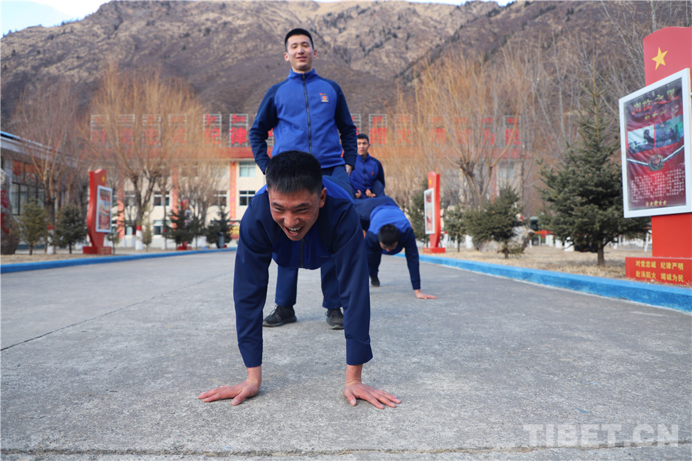圖為西藏森林消防總隊(duì)昌都支隊(duì)江達(dá)中隊(duì)摸索創(chuàng)新組訓(xùn)模式,積極開展趣味體能訓(xùn)練。