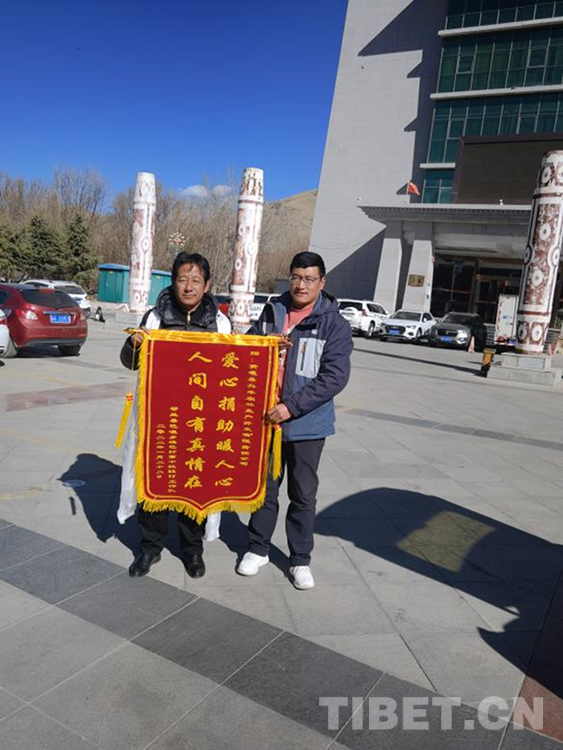 為了表示謝意,雄巴村駐村工作隊(duì)成員赴貢嘎縣為興豐農(nóng)林生產(chǎn)開發(fā)有限責(zé)任公司,當(dāng)面道謝并為該公司送上錦旗及該村特產(chǎn)干魚。(中國西藏網(wǎng) 記者/拉姆 圖片由雄巴村駐村工作隊(duì)提供)