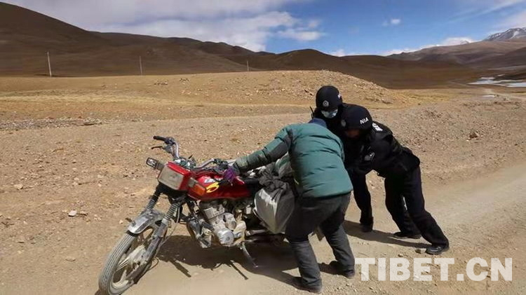 圖為民警們在巡邏路上幫助村民