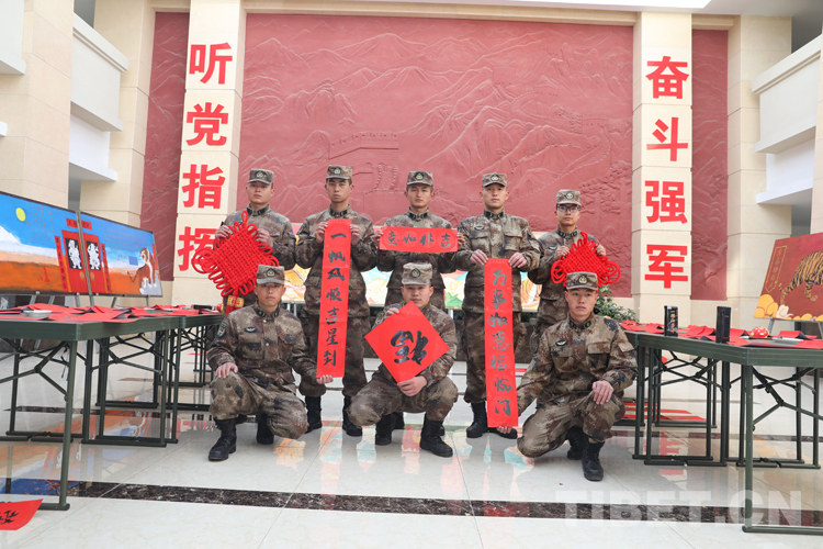 過(guò)年貼春聯(lián),是中華民族的傳統(tǒng)習(xí)俗之一,增加過(guò)年氛圍的同時(shí),也表達(dá)了官兵對(duì)新年美好的祝福。春聯(lián),又稱(chēng)“春貼”“門(mén)對(duì)”“對(duì)聯(lián)”,是過(guò)年時(shí)所貼的紅色喜慶元素,它以對(duì)仗工整、簡(jiǎn)潔精巧的文字描繪美好形象,抒發(fā)美好愿望,是中國(guó)特有的文學(xué)形式,是中華民族過(guò)年的重要習(xí)俗。