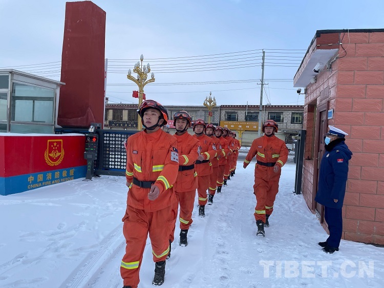 中國西藏網(wǎng)訊 晚上七點鐘,薛太文還在哨位上堅守著,他是那曲市森林消防大隊去年下隊的新消防員,這是他在這里過的第一個春節(jié)。警衛(wèi)室外面是零下三十七度的低溫,室內(nèi)在暖氣的包圍下溫暖如同春天?!鞍謰屵@會在干啥呢?應(yīng)該是在看電視吧,奶奶身體不知道這兩天怎么樣,等會下崗了給他們打個視頻吧……”正想著,大門外的車輛鳴號聲把他的思緒從家里拉了回來。薛太文趕忙沖出溫暖的警衛(wèi)室,在微微的細(xì)雪中打開了大門,板正地站好敬禮——在城區(qū)周邊巡查的隊友們回來了。