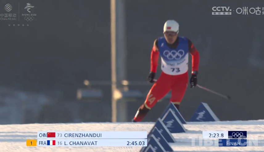 男子個人短距離(自由技術)資格賽共有90位運動員參加,前30名晉級1/4決賽。首次參加冬奧會的次仁占堆出發(fā)技術不錯,他在前0.6公里計時點滑出了1分23秒2的成績,接下來,次仁占堆控制住節(jié)奏,獲得第60名。