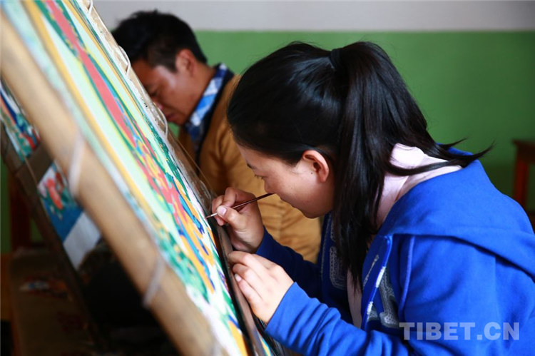 圖為西藏唐卡畫院中正在學習繪畫技術的年輕人 攝影:許娜