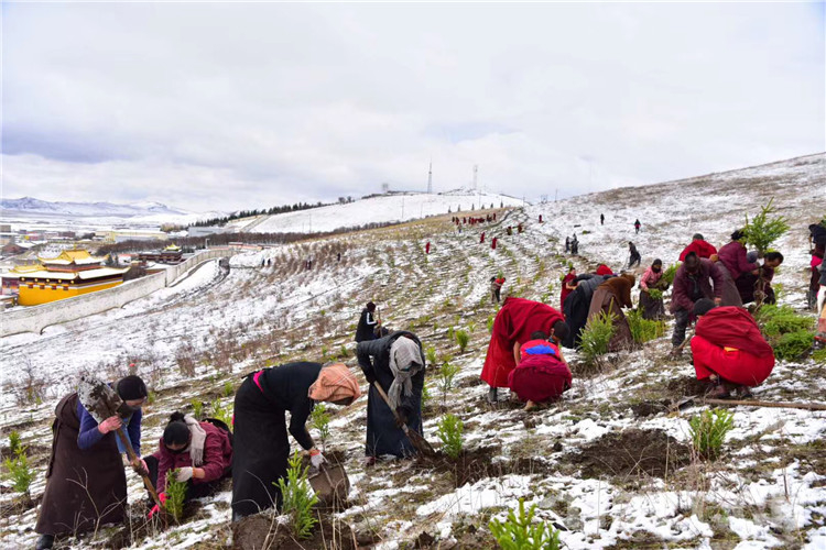 對于一直生活在若爾蓋的達(dá)扎委員來說,守護(hù)好這一方水土是他始終不渝的初心。20多年來,他帶領(lǐng)達(dá)扎寺僧人和當(dāng)?shù)厝罕?,形成了植樹造林的傳統(tǒng)并延續(xù)不斷。近幾年,為了持續(xù)引起社會(huì)關(guān)注,達(dá)扎委員連續(xù)提出了相關(guān)提案,如《關(guān)于建立若爾蓋國家公園,促進(jìn)黃河流域生態(tài)保護(hù)和高質(zhì)量發(fā)展的提案》《關(guān)于積極開展綠色資產(chǎn)評估,完善國家公園體制試點(diǎn)的提案》《關(guān)于加大阿壩州生態(tài)建設(shè)與保護(hù)力度的提案》《關(guān)于盡快健全長江、黃河上游流域生態(tài)保護(hù)補(bǔ)償機(jī)制的提案》《關(guān)于加大岷江-大渡河流域生態(tài)保護(hù)與建設(shè)力度的提案》《關(guān)于加大對川西北防沙治沙支持力度的提案》等,建議通過建設(shè)國家公園、建立完善草原濕地生態(tài)補(bǔ)償機(jī)制、大幅提高沙區(qū)草原補(bǔ)償和濕地保護(hù)補(bǔ)助標(biāo)準(zhǔn)、鞏固沙化治理成果等有效措施,切實(shí)守護(hù)住青藏高原、黃河上游的生態(tài)防線。