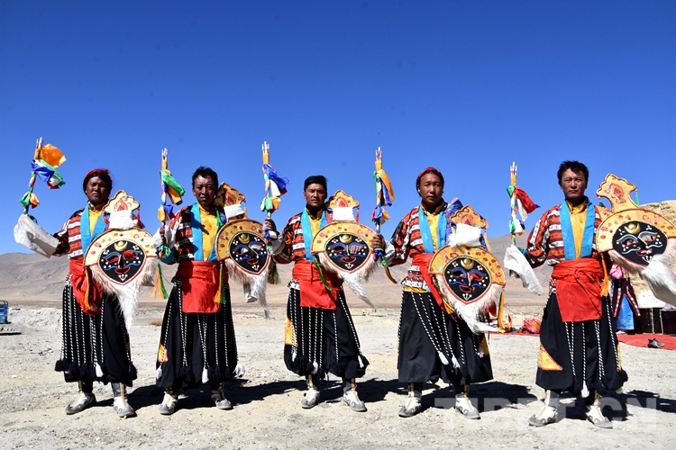 中國西藏網(wǎng)訊 西藏自治區(qū)日喀則市薩迦縣雄麥鄉(xiāng)曲堆村藏戲,以前與薩迦寺跳神相提并論,后面因種種原因,在民間失傳了很長時(shí)間。據(jù)當(dāng)?shù)乩先私榻B,曲堆村藏戲隊(duì),其表演形式、服裝、道具等風(fēng)格屬于覺木隆藏戲類別。