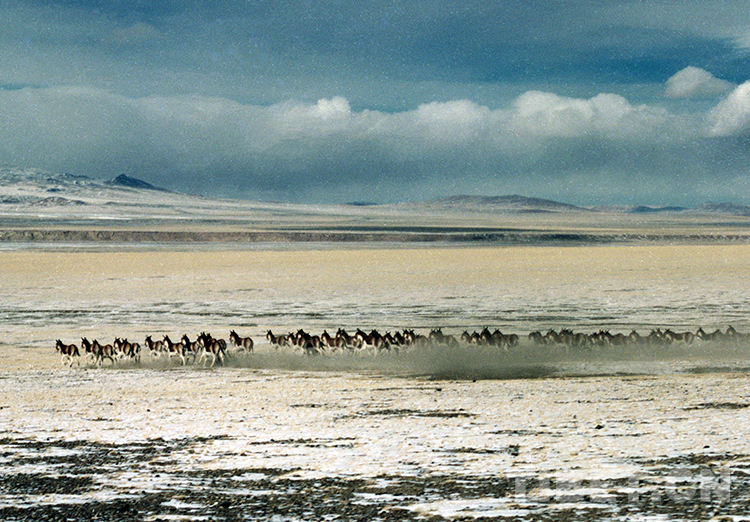 這是奔跑在羌塘國(guó)家自然保護(hù)區(qū)的國(guó)家一級(jí)保護(hù)動(dòng)物藏野驢(唐召明2009年攝)