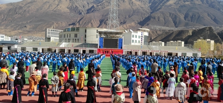 28日上午,全校師生共計(jì)800余人參加慶祝活動(dòng)。師生們?cè)谇f嚴(yán)的國(guó)歌聲中舉行了升旗儀式。隨后,學(xué)生代表就西藏百萬(wàn)農(nóng)奴解放63周年紀(jì)念日發(fā)表了國(guó)旗下演講,從舊西藏的故事講起,展示了如今新西藏的美好生活,號(hào)召大家銘記歷史,珍惜當(dāng)下,學(xué)好知識(shí),為家鄉(xiāng)的建設(shè)貢獻(xiàn)自己的力量。校長(zhǎng)勉勵(lì)學(xué)生珍惜當(dāng)下幸福生活,努力學(xué)習(xí),將來(lái)做合格的社會(huì)主義建設(shè)者和接班人。