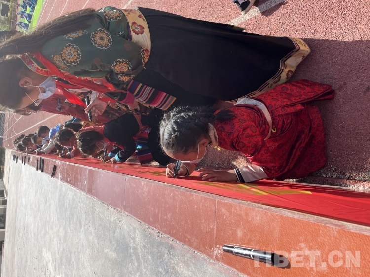中國(guó)西藏網(wǎng)訊 時(shí)至三月,春回大地。為深入宣傳好西藏百萬(wàn)農(nóng)奴解放的偉大意義,營(yíng)造心向祖國(guó)心向黨、凝心聚力促發(fā)展的濃厚氛圍,3月28日,西藏自治區(qū)山南市加查縣安繞鎮(zhèn)小學(xué)嚴(yán)格按照當(dāng)下疫情防控工作要求,舉行了“紀(jì)念西藏百萬(wàn)農(nóng)奴解放63周年暨建設(shè)美麗幸福西藏共圓偉大復(fù)興夢(mèng)想”慶?;顒?dòng),共同祝愿?jìng)ゴ笞鎳?guó)繁榮昌盛,西藏的明天更加美好。