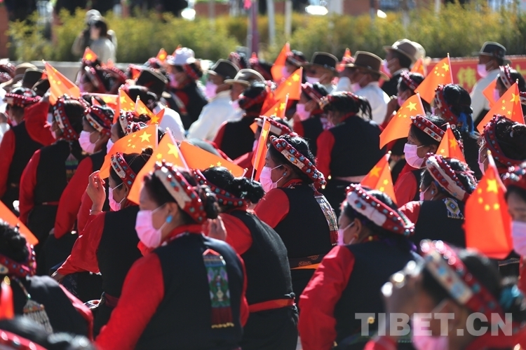 上午10時(shí)30分,伴隨著歌舞《歌頌幸?!罚瑧c祝西藏百萬農(nóng)奴解放63周年專場(chǎng)文藝演出拉開帷幕。《毛主席派人來》《逛新城》《翻身農(nóng)奴把歌唱》《新舊對(duì)比》等節(jié)目在現(xiàn)場(chǎng)掀起一個(gè)又一個(gè)高潮。舞臺(tái)下,滿是身著盛裝的各族群眾,不斷揮舞著手中的五星紅旗,臉上綻放著感動(dòng)和幸福的笑容。