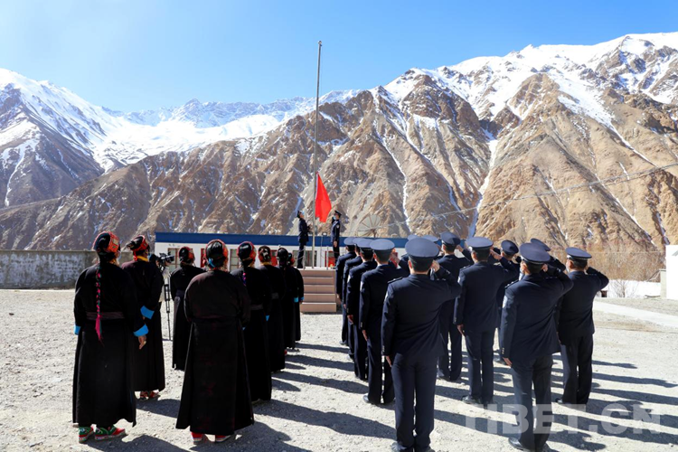 上午10時整,普蘭出入境邊防檢查站斜爾瓦執(zhí)勤點舉行紀(jì)念西藏百萬農(nóng)奴解放63周年“升國旗、唱國歌”儀式。參加儀式的民警整齊列隊、邊民群眾身著節(jié)日盛裝,大家共唱國歌,表達(dá)著對五星紅旗的崇高敬意和對中國共產(chǎn)黨的感恩之情。
