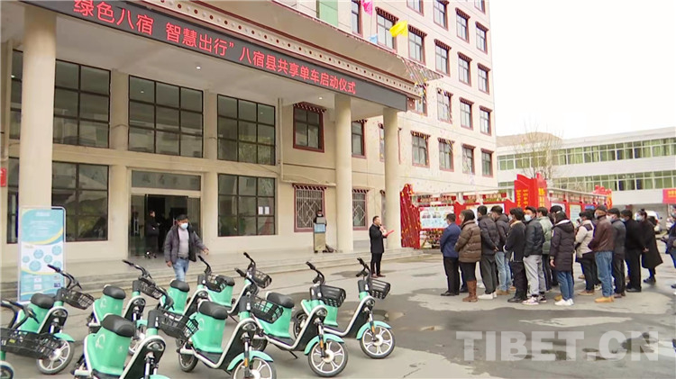 圖為八宿縣舉行“綠色八宿 智慧出行”迅馳共享單車投放啟動儀式