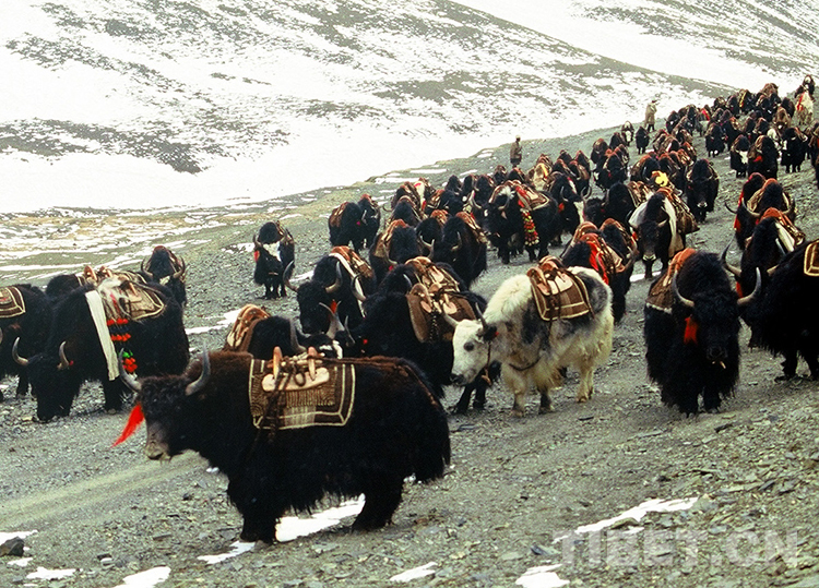 這種特殊地區(qū)的馱牛和馱羊運輸習俗,是當?shù)啬撩袷朗来瑦毫迎h(huán)境頑強抗爭的產(chǎn)物。昔日的馱牛隊和馱羊隊現(xiàn)已從藏北高原消失,留下的只有模糊不清的牛羊馱物時所走過的蹄印了。