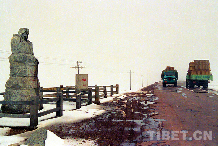 這是藏北高原替代牛羊運輸?shù)钠嚕谕ㄟ^青藏公路的唐古拉山口(唐召明1988年攝)
