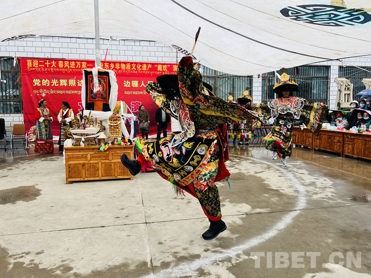為繼承和弘揚(yáng)優(yōu)秀傳統(tǒng)文化,使古老的藏戲再次煥發(fā)生機(jī),近日,西藏自治區(qū)日喀則市亞東縣藝術(shù)團(tuán)和亞東縣上亞東鄉(xiāng)嘎林崗藏戲隊(duì)共同開展了“喜迎二十大 春風(fēng)進(jìn)萬家”為主題的上亞東鄉(xiāng)非物質(zhì)文化遺產(chǎn)藏戲演出活動?;顒又荚谧尣貞蜇S富百姓精神文化生活的同時,激發(fā)廣大青少年傳承、弘揚(yáng)藏戲藝術(shù)的文化自信與文化自覺,推動藏戲的傳承、保護(hù)和發(fā)展。
