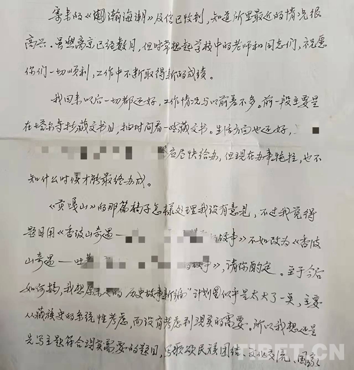 圖為上世紀(jì)80年代,陳老師的一封信(喜饒尼瑪提供)