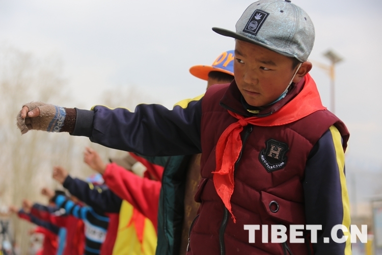 圖為才旺羅布老師和孩子們共同展示普蘭“噶爾”舞 攝影:王佳豪