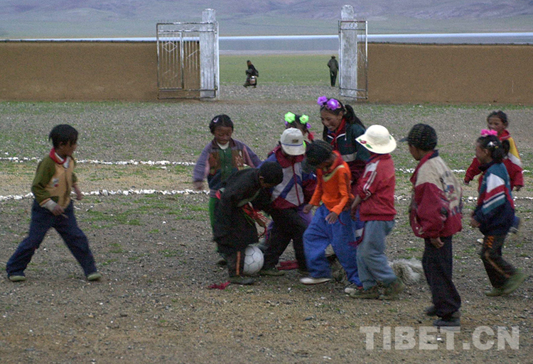 這是雙湖特別區(qū)(從雙湖辦事處改名而來,現(xiàn)為雙湖縣)嘎措鄉(xiāng)小學(xué)學(xué)生在課余時(shí)間踢足球(唐召明2001年攝)