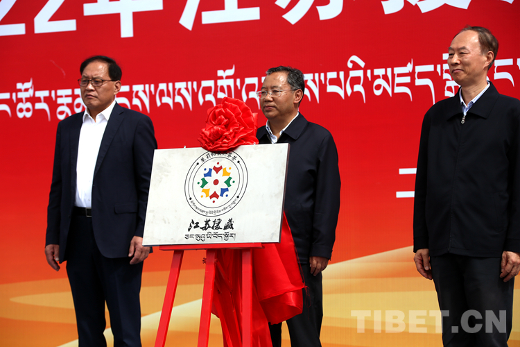 圖為現(xiàn)場發(fā)布江蘇援藏項目標識 攝影:王佳豪