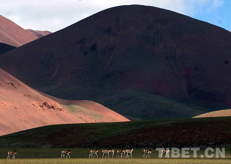 這是羌塘國家級自然保護(hù)區(qū)多彩的山脈與藏野驢(唐召明2009年8月5日攝)