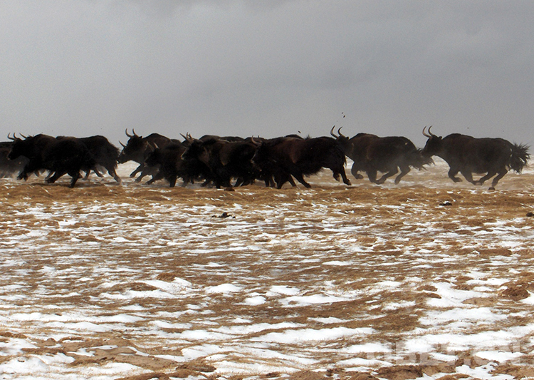 這是奔跑在羌塘國家級自然保護(hù)區(qū)的國家一級保護(hù)動(dòng)物野牦牛(唐召明2009年攝)