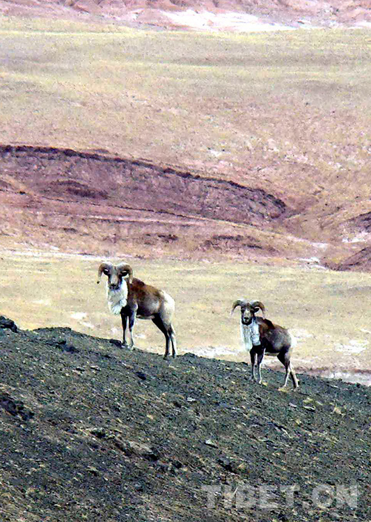 這是棲息生活在羌塘國家級自然保護(hù)區(qū)的國家保護(hù)動(dòng)物盤羊(唐召明2009年8月7日攝)