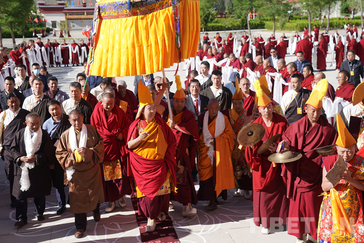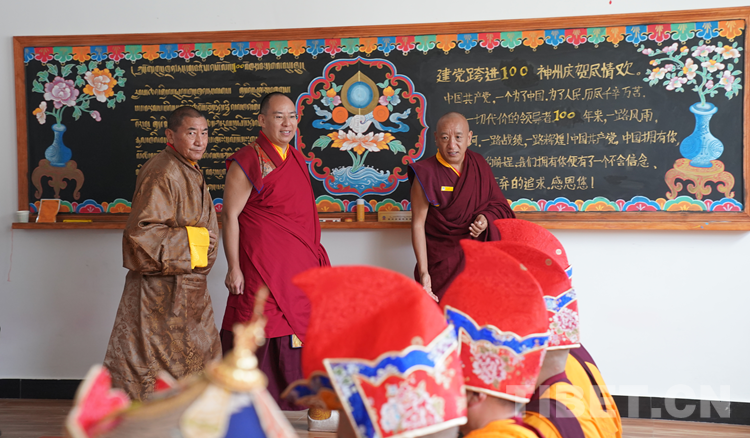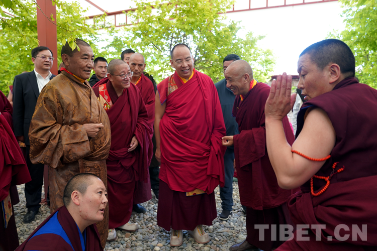 班禪表示,今天來到學(xué)院看到無論是硬件上、軟件上,都功德具足、法喜圓滿。我想一切的外在條件都已經(jīng)萬事俱備,只需要我們?nèi)w師生奮發(fā)圖強(qiáng),珍惜把握學(xué)習(xí)時(shí)光?!白8W(xué)院師生們健康長(zhǎng)壽,用我們現(xiàn)有的人生為祖國(guó)、為民族、為中國(guó)特色社會(huì)主義的建設(shè)、為藏傳佛教中國(guó)化做出更多的貢獻(xiàn)。祝愿大家六時(shí)吉祥、十相自在、功德圓滿!”