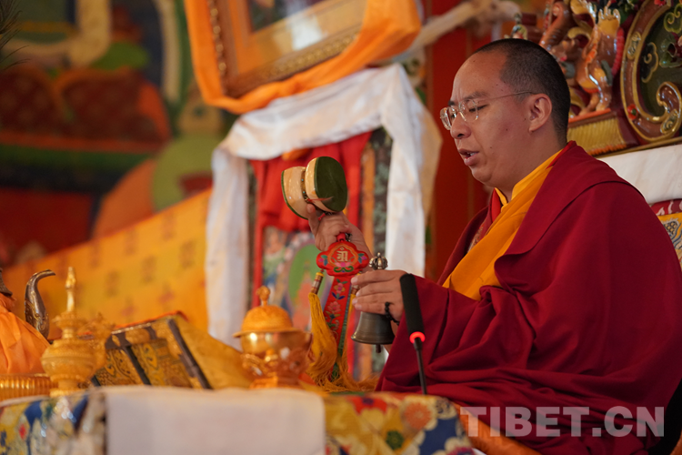 圖為班禪在西藏佛學(xué)院舉行長(zhǎng)壽灌頂 攝影:王淑