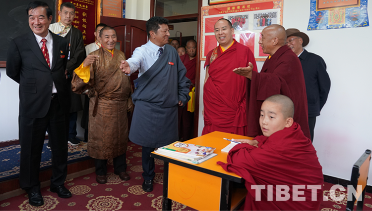 圖為班禪來到少年活佛班了解少年活佛學(xué)習(xí)、生活情況 攝影:王淑