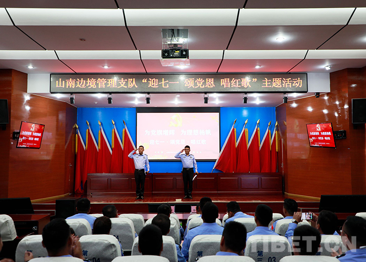 圖為山南邊境管理支隊機關組織開展“為黨旗增輝 為理想揚帆——迎七一 頌黨恩 唱紅歌”主題歌詠比賽 鄭琦山攝