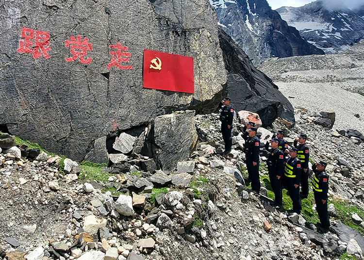 “我志愿加入中國共產黨,擁護黨的綱領,遵守黨的章程......”。邊巴邊境派出所民警在深入一線巡邏踏查間隙,面向黨旗肅然站立,高舉右拳莊嚴宣誓,表達為黨的事業(yè)奮斗終身的初心,更加堅定聽黨話、跟黨走的理想信念。