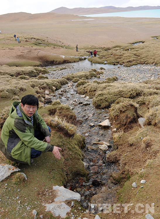 這是王飛在班戈縣青龍鄉(xiāng)六村“浩秀泉”水旁,介紹班戈縣與中國(guó)石化將合作開(kāi)發(fā)的冰川礦泉水項(xiàng)目(唐召明2015年5月20日攝)